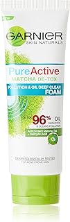 Garnier Pure Active Matcha De-Tox Follution & Huile Profonde Propre Peau sujette à l'Acné Thé Vert 50 ml Peau grasse Particules Pollution de la saleté