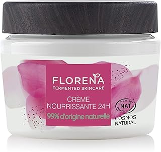 FLORENA Crème nourrissante 24H à l’Huile d’Olive et au Camélia Fermentés (1 x 50 ml), soin hydratant visage pour tous types de peaux, soin visage nourrissant longue durée
