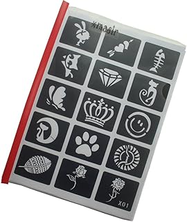 Xmasir 20 feuilles (446 pièces) de pochoirs de tatouage pour aérographe, album, livre d'art, petit kit de tatouage au henné à paillettes pour peinture corporelle