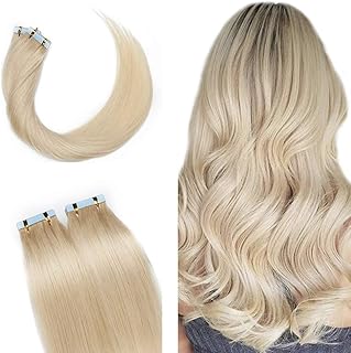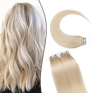SEGO Extension Adhesive Naturel Extensions Bande Adhésif - 60 CM 613#Blond Blanchi [2.5g X 10 pcs] - Vrai Cheveux a Froid Invisible Tape In Remy Hair