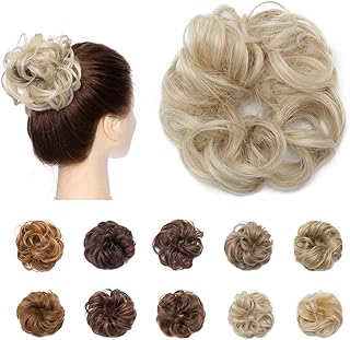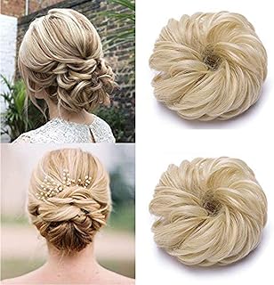 Grand Chignon Chouchou Extension de Cheveux Chignon Ondulé Elastique 80G Chignon Synthétique Epais Donut Queue de cheval Postiche, Blond Cendré/Blond Très Clair