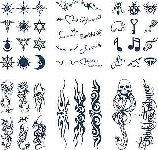 Konsait tatouages temporaires pour adultes hommes femmes enfants, faux noir tatouage temporaire Tattoos Étanche corps autocollant Tatouages éphémères pour bras poignet main
