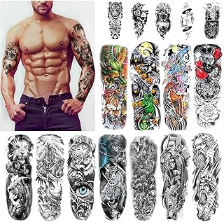 Konsait 16 Feuille Plein Bras Tatouages Éphémères Homme Femme Manchette Faux Tatouages Noir Autocollants Tatouage Loup Lion Tigre Oeil Grand Tatouages Temporaire Homme Jambe