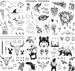 Konsait 6 Feuilles Noir Autocollants Tatouage Temporaire Pour Adultes homme Femme Dragon Loup Lion Tigre Hibou wapiti Aigle planète tatouage éphémère homme faux corps bras poitrine épaule tatouages