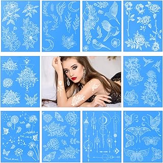 HOWAF 10 Feuilles Tatouage Temporaire pour Femmes Filles, Papillon Fleurs Tatouages Éphémères Blanc Faux Tatouages Autocollants pour Corps Bras Poitrine Épaule Tatouages