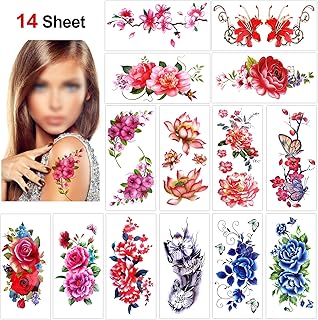 Konsait 14 feuilles Faux Tatouages Temporaires Tattoos Étanche bras Tatouages éphémères Autocollants Corps pour femmes, Ados Filles, rose et Fleurs