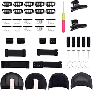 YMHPRIDE Capuchon de perruque extensible en dôme en U en Spandex en nylon noir avec aiguille en T, aiguilles en C, peignes et épingle à cheveux, bande élastique pour perruque (noir)